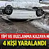 Konya'nın Ereğli ilçesinde tipi ve buzlanma nedeniyle sürücüsünün direksiyon hakimiyetini kaybettiği otomobil takla attı. Kazada 4 kişi yaralandı.