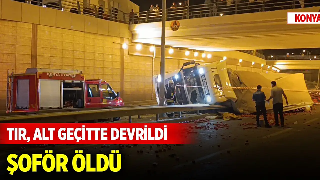 Konya'da TIR, alt geçitte devrildi şoför öldü