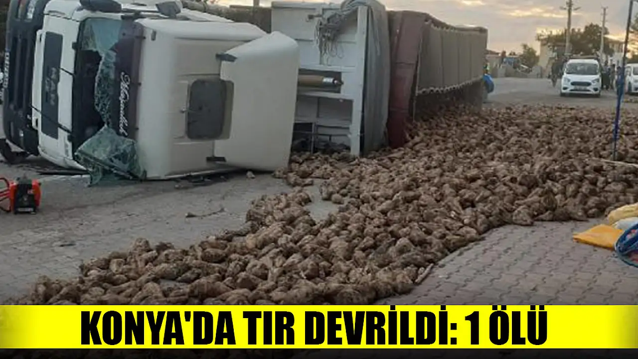 Konya'nın Ereğli ilçesinde devrilen tırın sürücüsü hayatını kaybetti.