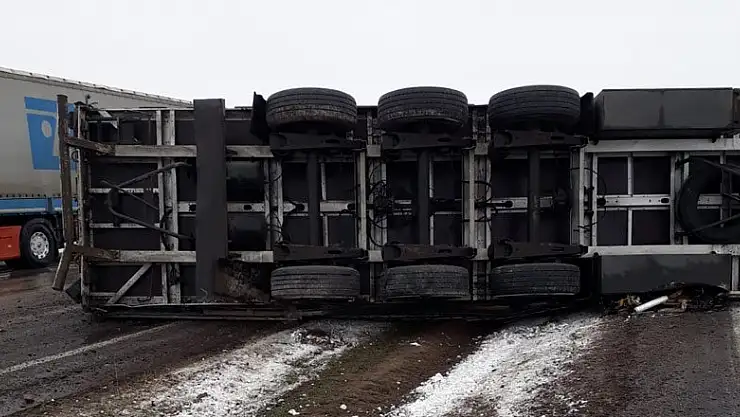 Konya'nın Karapınar ilçesinde, kontrolden çıkan tırın devrilmesi sonucu 1 kişi yaralandı.