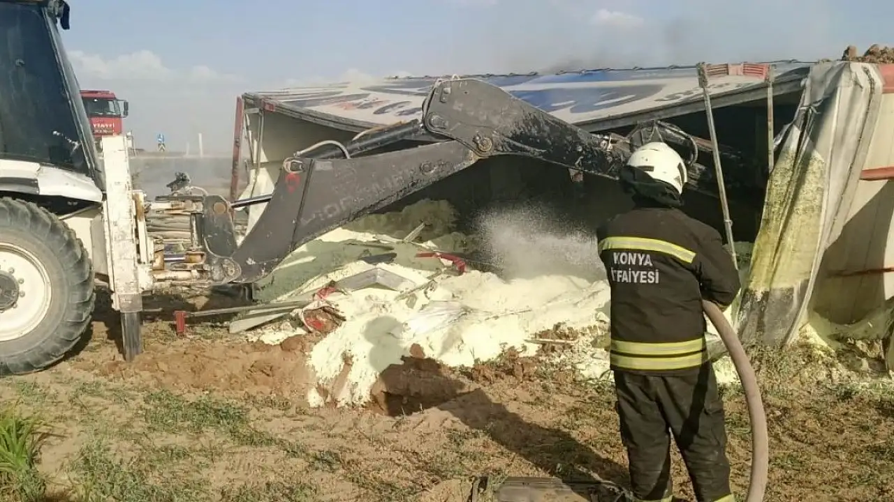 Kaza, Konya-Adana karayolu üzeri Ereğli ilçesi Bulgurluk Mahallesi mevkiinde meydana geldi. Edinilen bilgiye göre, L.P. idaresindeki 42 ALB 484 plakalı kükürt yüklü tır kontrolden çıkarak şarampole devrildi. Kaza sonucunda tırın dorsesinde yangın çıkarken, tır sürücüsü L.P. yaralandı. Kaza ve yangın ihbarı üzerine olay yerine sağlık, itfaiye, jandarma ve polis ekipleri sevk edildi. Yangın itfaiye ekiplerinin zamanında müdahalesiyle kontrol altına alınarak söndürüldü. Yaralı sürücü ambulansla Ereğli Devlet Hastanesine kaldırılarak tedavi altına alındı.