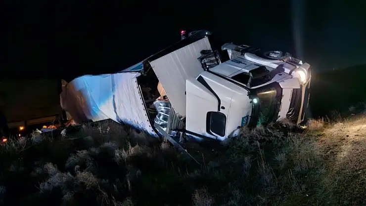 Konya'da kontrolden çıkan tırın devrilmesi sonucu sürücü yaralandı.