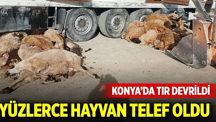 Konya'da küçükbaş hayvan yüklü bir tırın devrilmesi sonucu 147 hayvan telef oldu.