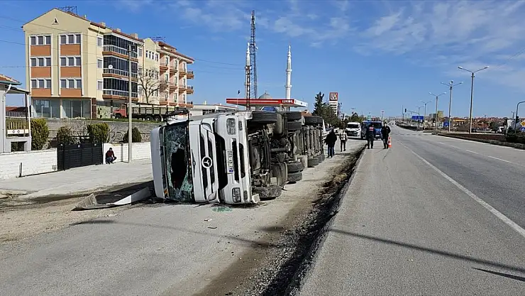 Konya'nın Kulu ilçesinde devrilen tırın sürücüsü yaralandı.