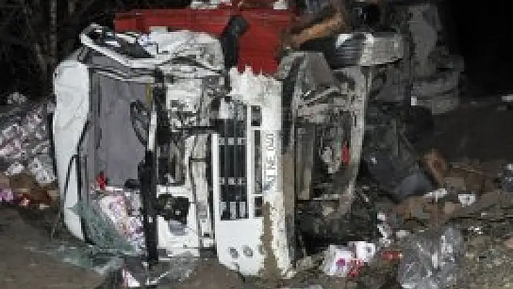 Kaza sonrası olay yeri savaş alanına dönerken 38 PN 903 plakalı tır da yüklü bulunan briketler yola saçıldı.
