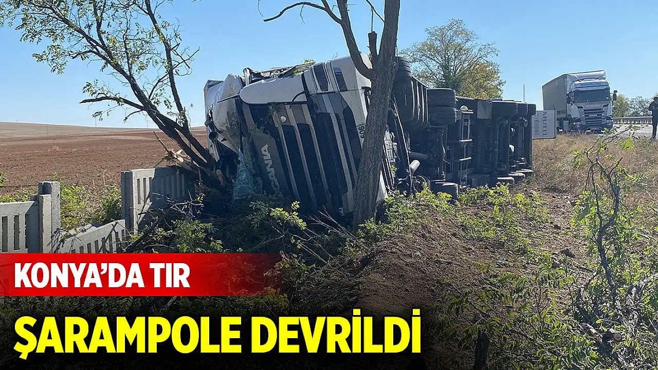 Konya'da tır şarampole devrildi, sürücü yaralandı