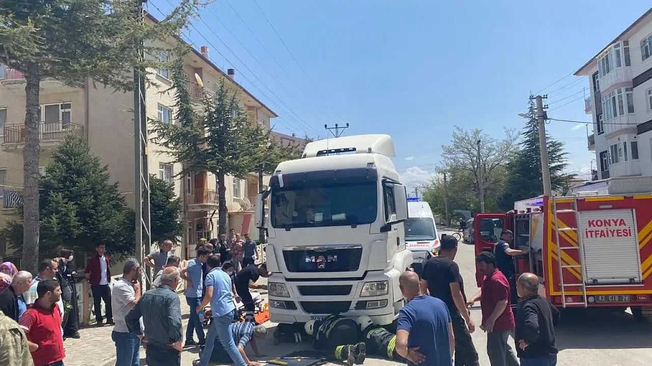Konya'da tırın altında kalan bisikletli ağır yaralandı