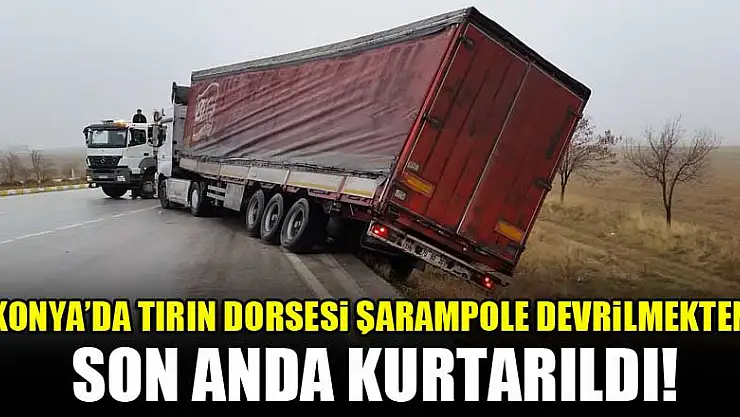 Konya'da tırın dorsesi şarampole devrilmekten son anda kurtarıldı!