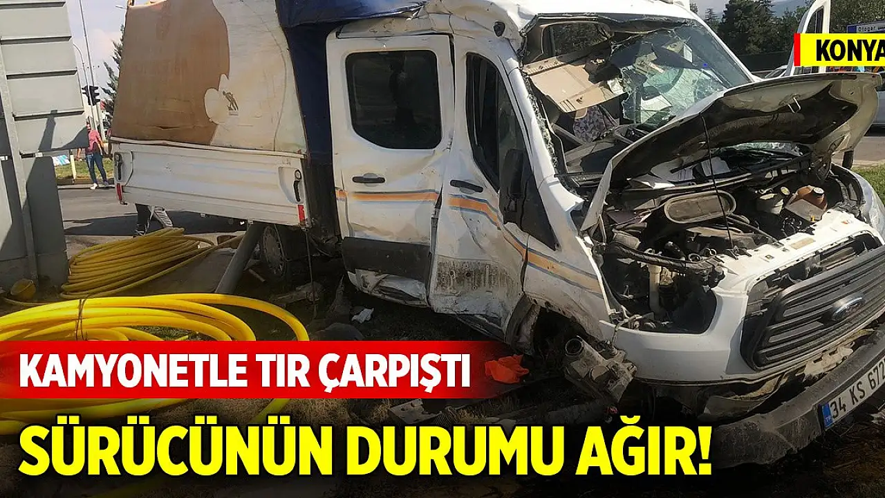 Konya'da tırla kamyonet çarpıştı, yaralılar var!