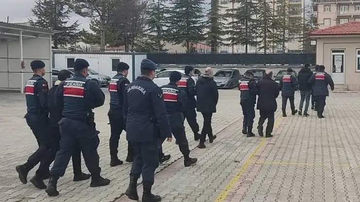 Haklarında yakalama kararı çıkarılarak gözaltına alınan 6 şüpheli, İl Jandarma Komutanlığındaki işlemlerinin ardından adliyeye sevk edildi.