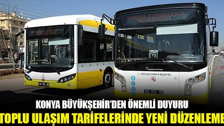 Konya Büyükşehir Belediyesi toplu ulaşım tarifelerinde yeni düzenlemeye gidildiğini açıkladı. Düzenlemeler 12 Nisan Pazar gününden itibaren geçerli olacak.