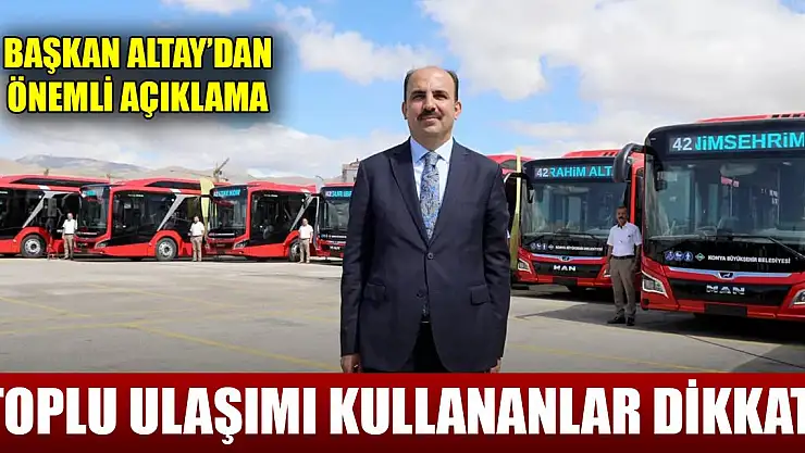 Konya Büyükşehir Belediye Başkanı Uğur İbrahim Altay, toplu ulaşım araçlarını kullananları doğrudan ilgilendiren açıklamalarda bulundu.