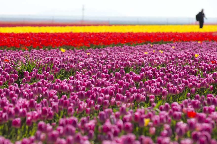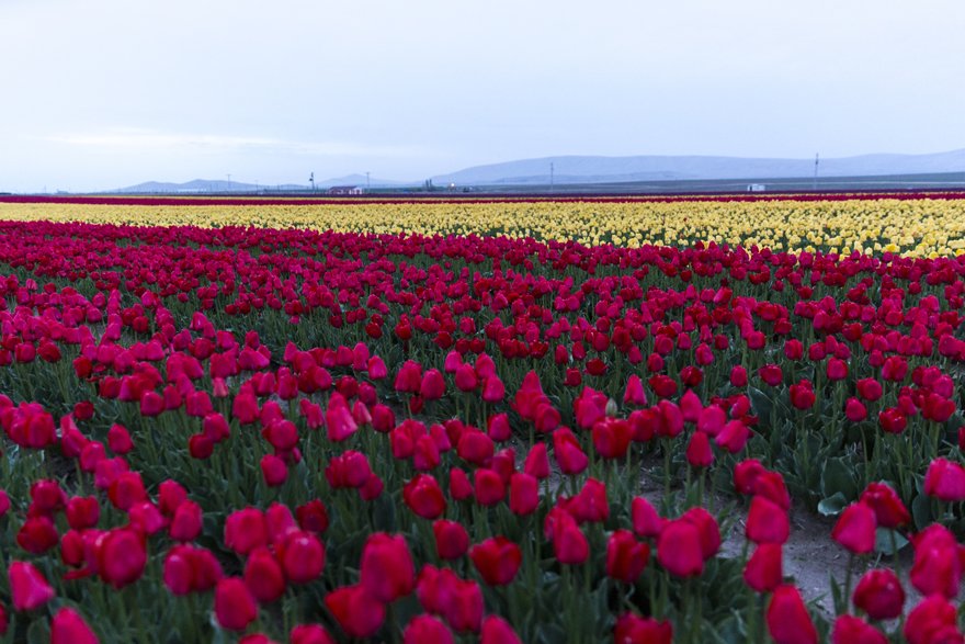 Özellikle fotoğraf tutkunlarının büyük ilgi gösterdiği, "topraktaki gökkuşağı" olarak nitelendirilen lale tarlasında fotoğrafçılar, görsel şölende en iyi kareyi yakalayabilmek için birbirleriyle yarışıyor.