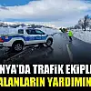Konya'da trafik ekipleri yolda kalanların yardımına koştu