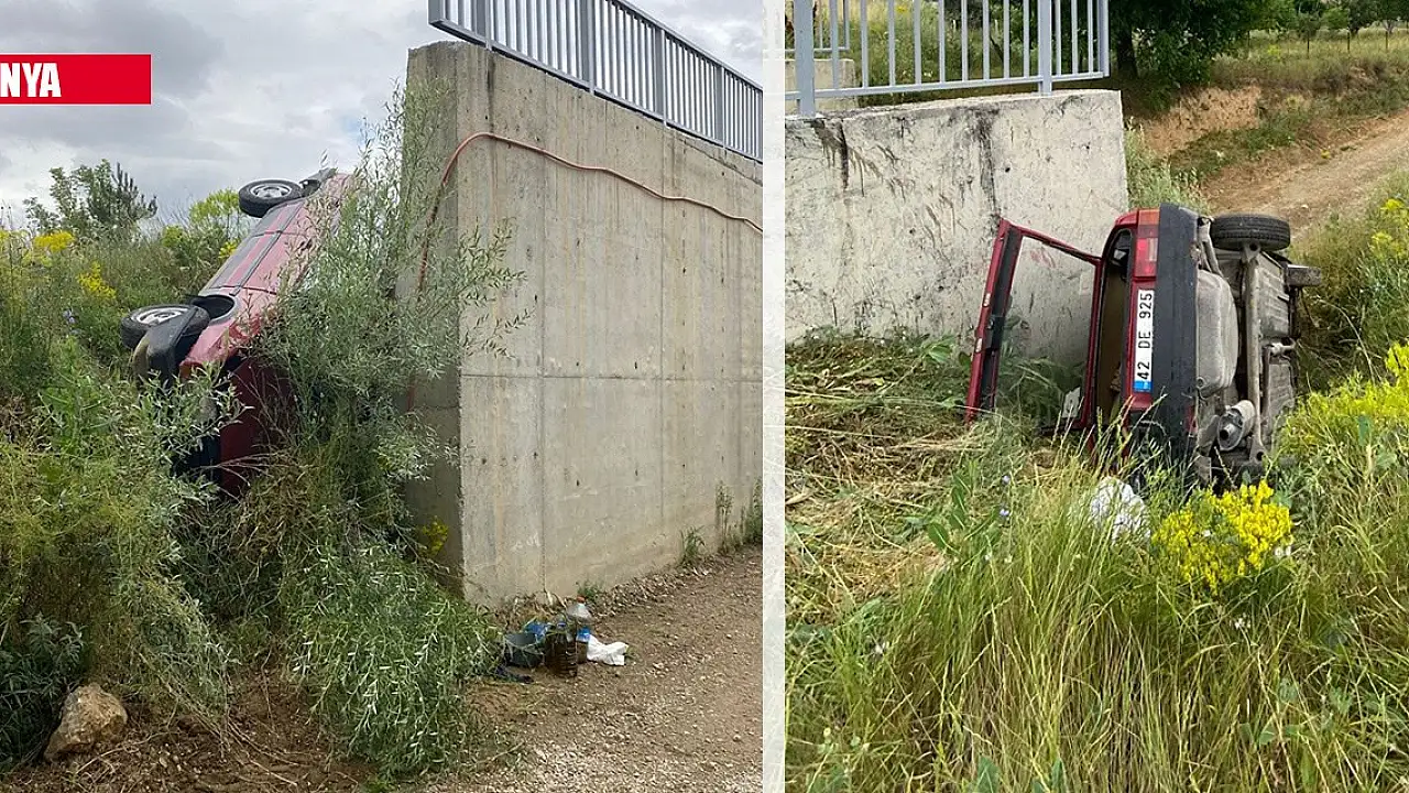 Konya'nın Akşehir ilçesinde alt geçitte devrilen otomobildeki 3 kişi yaralandı.