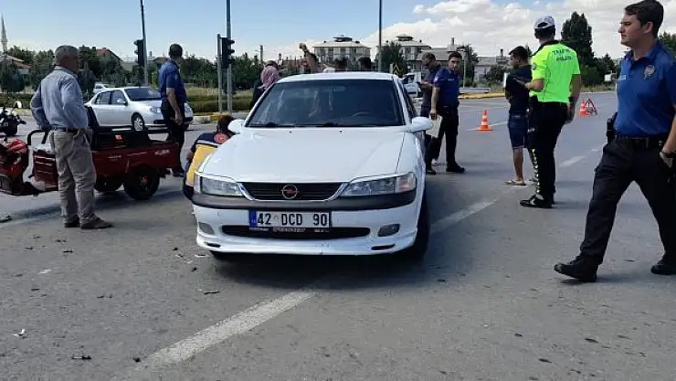 Hatice Sarı (62) idaresindeki elektrikli motosiklet, Seydişehir-Antalya kara yolu Dumlupınar kavşağında Bayram Avcu yönetimindeki 42 DCD 90 plakalı otomobille çarpıştı.