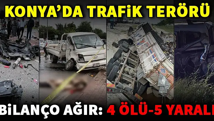 Konya gündemini bugün trafik kazaları meşgul etti. Gün boyunca meydana gelen 4 farklı kazadan acı haberler geldi. Şehrin farklı noktalarında meydana gelen kazalarda 4 kişi hayatını kaybederken, 5 kişi de yaralandı.