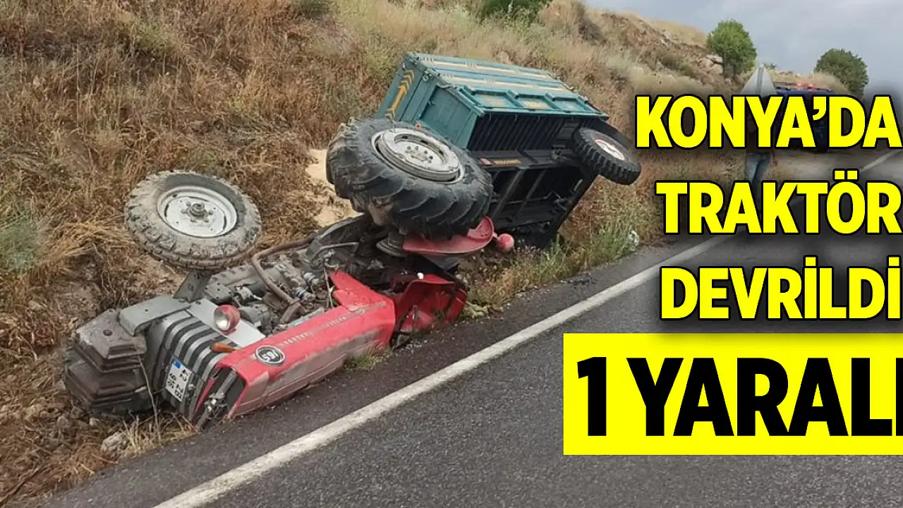 Konya'da traktörün şarampole devrilmesi sonucu altında kalan sürücü yaralandı