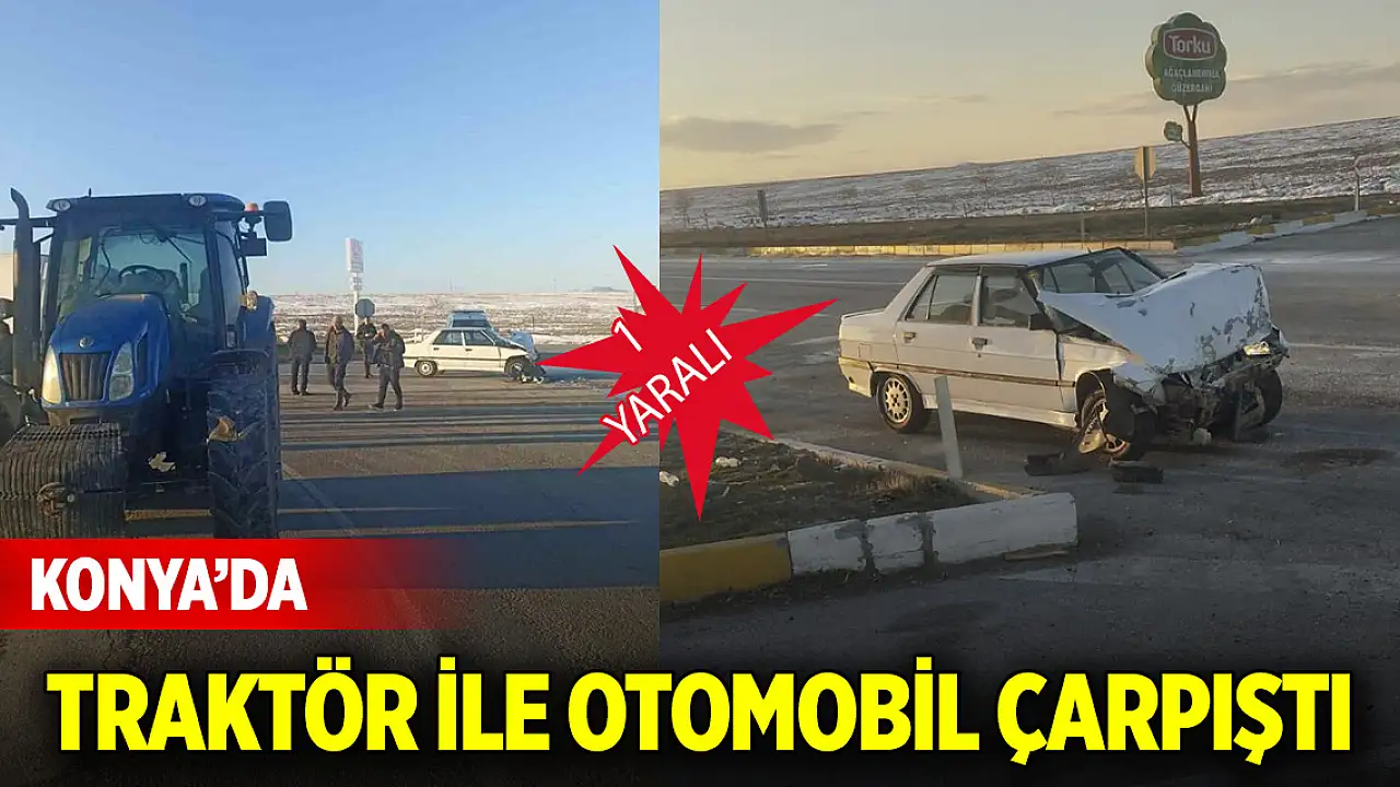 Konya'da traktör ile otomobilin çarpıştığı kazada 1 kişi yaralandı.