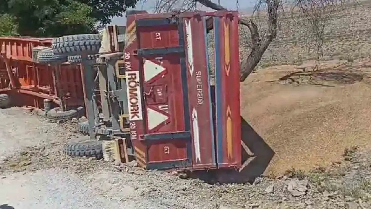 Konya'nın Kulu ilçesinde yol yapımı nedeniyle daralan yolda traktöre bağlı 2 römorkun devrilmesi sonucu, yaklaşık 20 ton mercimek yola saçıldı.