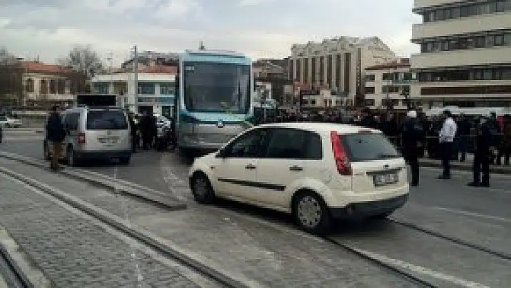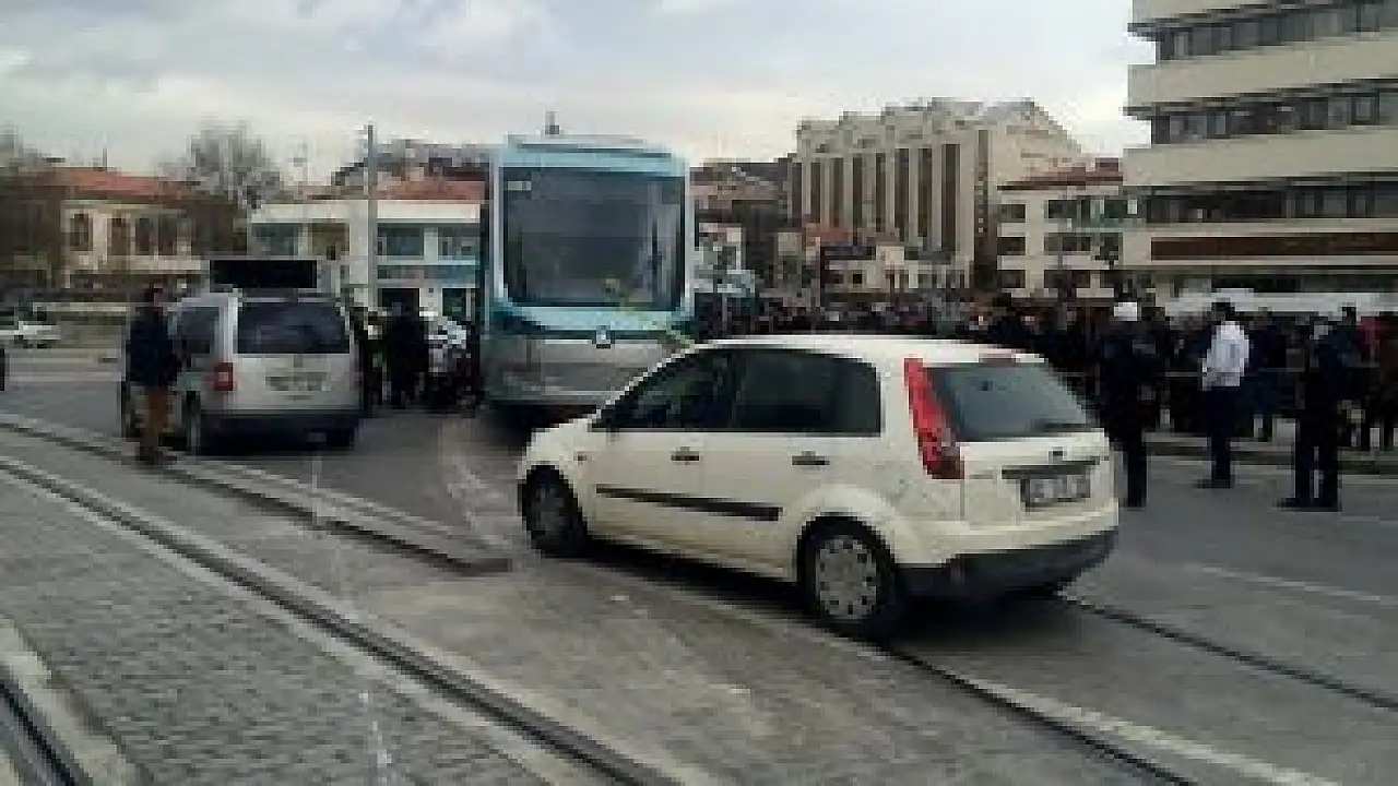 Konya'da Alaaddin-Adliye seferini yapan tramvay raydan çıktı.