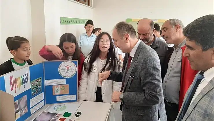 Öğrencilerin hazırladığı projelerin sergilendiği şenlikte öğrenciler, çalışmalarını İlçe Milli Eğitim Müdürü Turan Kayacılar'a anlattı.