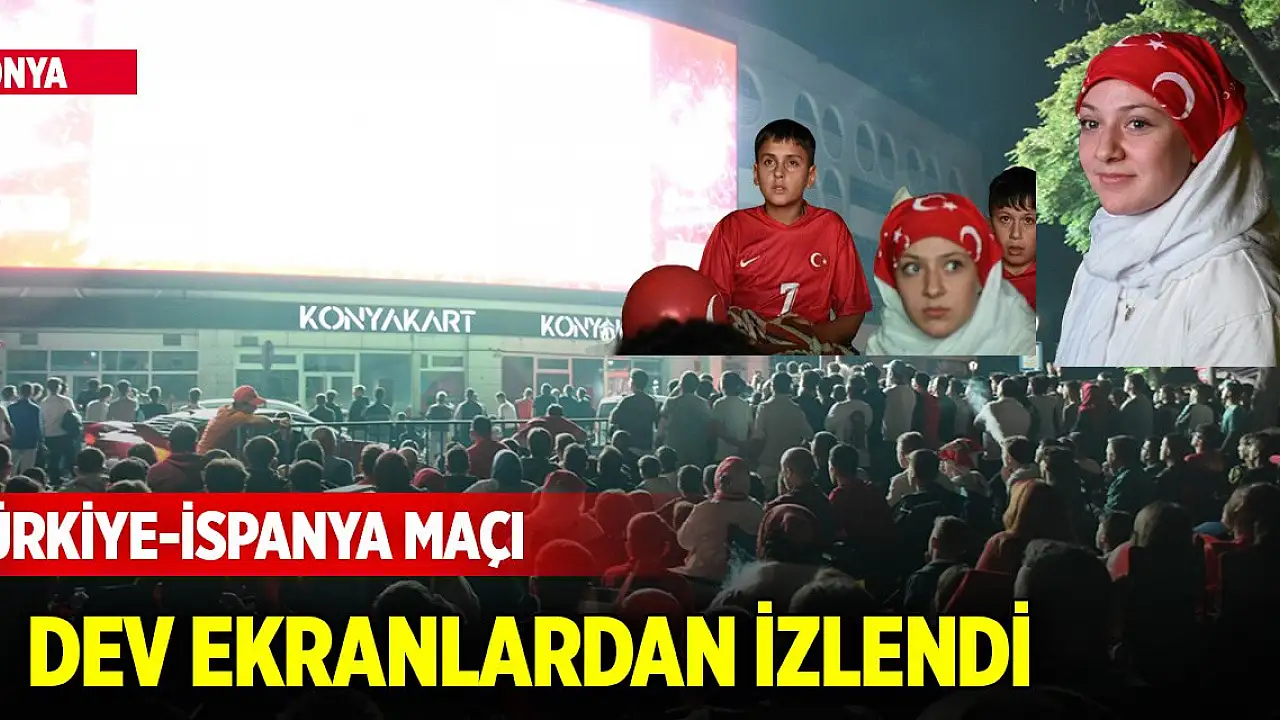 Konya'da vatandaşlar Türkiye-İspanya maçını meydanlara kurulan dev ekranlardan izledi.