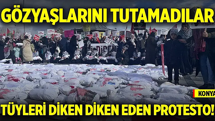 Konya'da tüyleri diken diken eden protesto! Gözyaşlarını tutamadılar