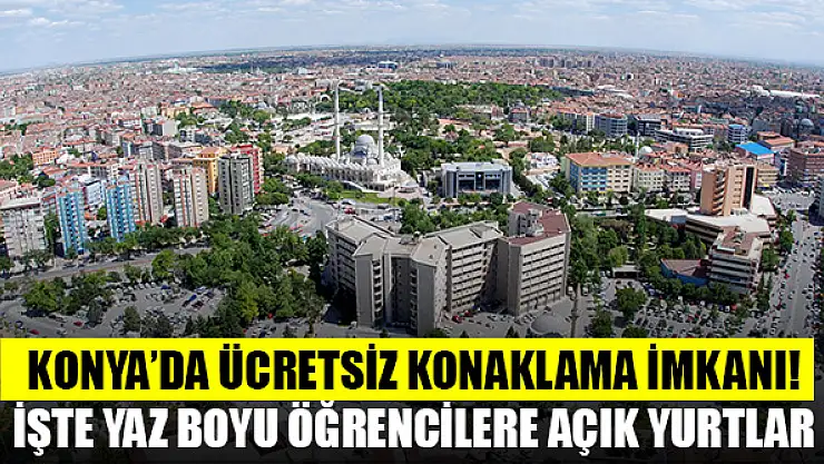 Konya'da 15 Temmuz-1 Eylül tarihleri arasında ücretsiz yararlanılacak olan yurtların isimleri belli oldu.