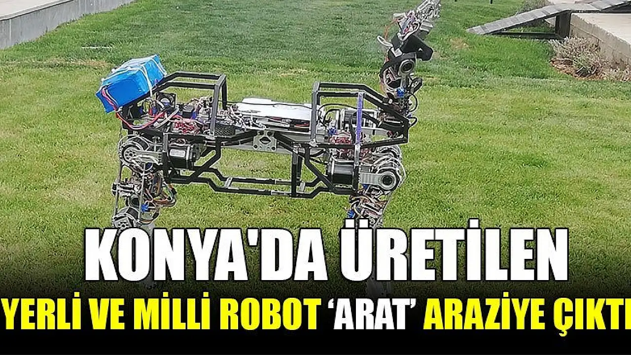Konya’da tamamen yerli ve milli imkanlarla Akınsof- Akınrobotics firması tarafından üretilen dört ayaklı robot ARAT’ın prototipi görücüye çıktı. Üzerinde 86 sensörü bulunan ve 17 ekleme sahip olan robot ARAT, dört ayağı olması sebebiyle arazide yürüyebiliyor ve dengede kalabiliyor. Yaklaşık 30 kilo yük taşıyabilme özelliğine sahip robotun, arazilerde ve benzeri alanlarda kullanılabilmesi planlanıyor.