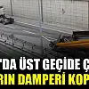 Kara yolu üzerindeki üst geçide çarpan damper, çekiciden ayrıldı. Sürücü Hasan Hüseyin Ö, üst geçitten yaklaşık 200 metre sonra aracı durdurabildi.