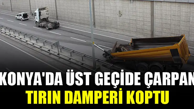 Konya'nın Karapınar ilçesinde üst geçide çarpan tırın damperinin kopması ulaşımı olumsuz etkiledi.