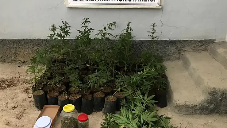 Konya'nın Çumra ilçesinde yapılan uyuşturucu operasyonunda 181 gram esrar ve saksılara ekilmiş 128 kök dişi Hint keneviri bitkisi ele geçirildi.