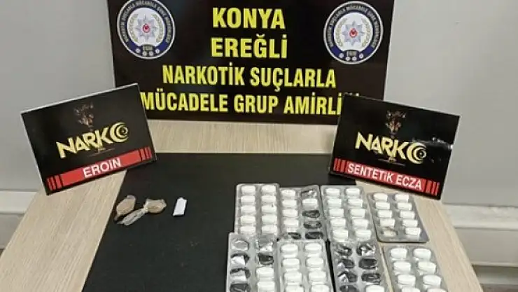 Konya'nın Ereğli ilçesinde düzenlenen operasyonda uyuşturucu hap ve eroin ele geçirilirken 3 kişi tutuklandı.