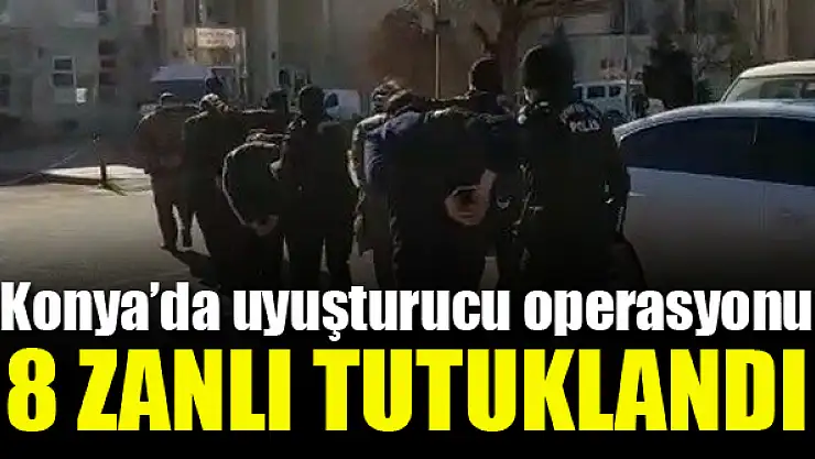 Edinilen bilgiye göre, Konya İl Emniyet Müdürlüğü Narkotik Suçlarla Mücadele Şube Müdürlüğü ekipleri uyuşturucu madde ticareti yapan kişilere yönelik çalışma başlattı. Ekipler sokak satıcılarına yönelik detaylı çalışmalar neticesinde, belirlenen adreslere operasyon düzenledi. Yapılan baskınlarda 8 kişi yakalanarak gözaltına alındı. Tespit edilen iki araç ve merkez Selçuklu ilçesi Buhara Mahallesinde iki yabancı uyruklu şahsın üzerinde yapılan aramada ise toplam 10 kilogram eroin, 355 gram uyuşturucu madde ve birçok uyuşturucu hap ele geçirildi. Operasyon kapsamında "uyuşturucu madde ticareti yapmak/nakletmek" suçlarından gözaltına alınan 8 kişi, çıkarıldıkları mahkemece tutuklanarak ceza evine gönderildi.
