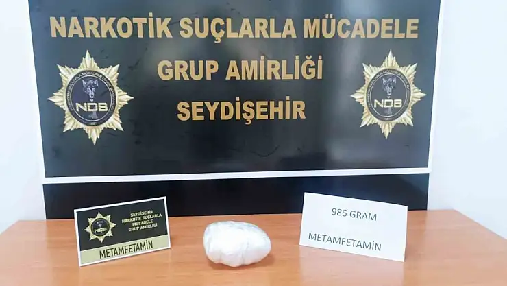 Edinilen bilgiye göre, Konya Emniyet Müdürlüğü Narkotik Şube Müdürlüğü ile Seydişehir Narkotik Amirliği ekipleri, şüphelendikleri bir aracı Antalya çevre yolunda durdurdu. Araçta yapılan aramada poşet içindeki yastığa gizlenmiş vaziyette yaklaşık 1 kilogram metamfetamin maddesi ele geçirdi. Araç sürücüsü A.K. ekipler tarafından gözaltına alınarak işlemleri yapılmak üzere Emniyet Müdürlüğüne götürüldü.