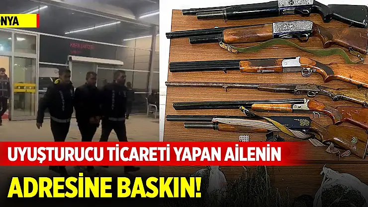 Konya'da polis ekipleri, evlerinde uyuşturucu ticareti yaptığı iddia edilen bir ailenin adresine baskın yaptı. Baskında 6 adet tüfek, 1 adet tabanca ve 1 kilogram 135 gram esrar ele geçirildi.