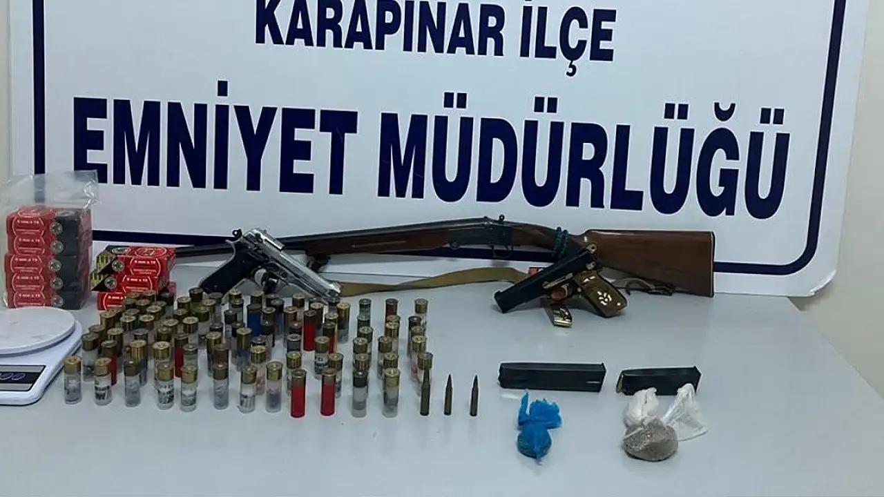 Edinilen bilgiye göre, Karapınar İlçe Emniyet Müdürlüğü ekipleri tarafından yapılan çalışmalar neticesinde Z.S. isimli şahsın uyuşturucu ticareti yaptığı bilgisi alındı. Bunun üzerine harekete geçen ekipler şahsın ev ve işyerinde arama yaptı. Yapılan aramalarda 1 adet hassas terazi, 20 gram kenevir tohumu, 1 adet ruhsatsız av tüfeği, 87 adet av tüfeği fişeği, 1 adet tabanca, 1 adet faturasız kurusıkı tabanca ve birçok fişek ele geçirildi. Olayla ilgili olarak Z.S. uyuşturucu ticaretinden yakalanarak gözaltına alındı. Şüpheli şahıs, çıkarıldığı mahkemece tutuklanarak cezaevine gönderildi.