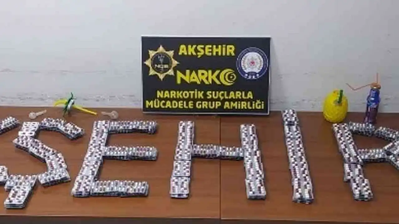 Akşehir İlçe Emniyet Müdürlüğü Narkotik Suçlarla Mücadele Grup Amirliği ekipleri, sokak satıcılarına ve kullanıcılarına yönelik yürüttüğü istihbarı çalışmalar çerçevesinde; İzmir'den Konya'ya giden bir otobüste yolcu olarak seyahat eden D.K. (21) ile S.K. (28) isimli yolcuların yanlarında yüklü miktarda uyuşturucu olduğu yönünde yapılan bir ihbarı değerlendirerek otobüsü takibe aldı. Otobüs, Narkotik Suçlarla Mücadele, Asayiş Büro Amirliği ve Trafik Denetleme ekibi tarafından D-300 Karayolu üzeri uygulama noktasında durduruldu. Narkotik ekibi araçta bulunan D.K. ile S.K. isimli şüphelileri gözaltına aldı. Şüpheliler eşyaları ile birlikte Akşehir İlçe Emniyet Müdürlüğü Narkotik Suçlarla Mücadele Büro Amirliğine getirildi. Akşehir Cumhuriyet Başsavcılığından alınan arama kararı ile şüphelilerin üzerinde ve eşyalarında arama yapıldı. Yapılan aramada valiz içerisinde 6 bin 41 adet uyuşturucu hap ile 4 adet uyuşturucu madde kullanma aparatı ele geçirilerek el konuldu. Şüpheli her iki şahıs da gözaltına alınarak, Uyuşturucu veya Uyarıcı Madde İmal ve Ticareti suçu ile Kullanmak İçin Uyuşturucu veya Uyarıcı Madde Satın Almak, Kabul Etmek veya Bulundurmak ya da Uyuşturucu veya Uyarıcı Madde Kullanmak suçundan işlem yapıldı. Narkotik Suçlarla Mücadele Büroda işlemleri biten iki şüpheli de adli mercilere sevk edildi.