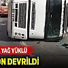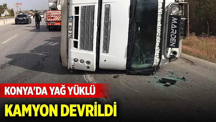 Konya'da yağ yüklü kamyon kontrolden çıkarak devrildi.