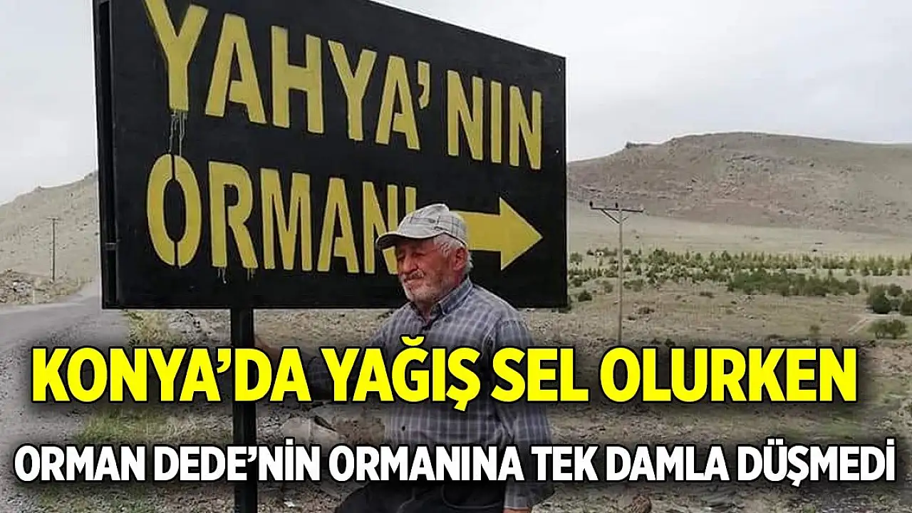 Konya'da Ereğli-Karapınar sınırındaki Beyören mahallesine kurduğu ormanla 'Orman Dede' unvanını alana Rahim Demirbaş'ın ormanına yağmur yağmadı.