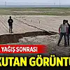 Konya'da yoğun yağmur yağışı sonrası tarlada yüzey yarığı oluştu.