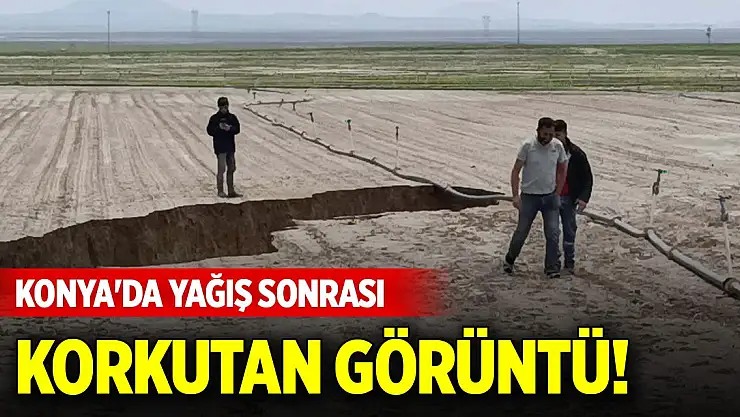 Konya'nın Karapınar ilçesinde etkili olan sağanak yağış, Tilkili ile Kayalı mahalleleri arasındaki bağlantı yolunda büyük bir yarığın oluşmasına neden oldu.