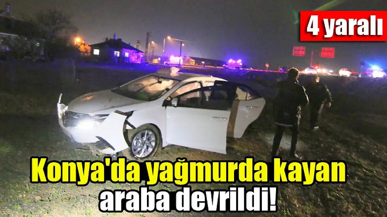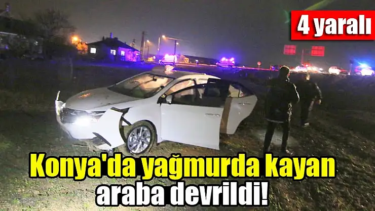 Konya'da yağmurda kayan araba devrildi! 4 yaralı