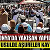 Mevlana Meydanı’nda ocaklardaki aşure, Mevlid-i Şerif ve zikirlerle gün boyu altı harlanmış kazanlarda kaynatıldı. Daha sonra aşureler Konyalılara ikram edildi.