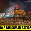 İtfaiye ekiplerinin müdahalesiyle söndürülen yangında, 3 bin saman balyası yandı.