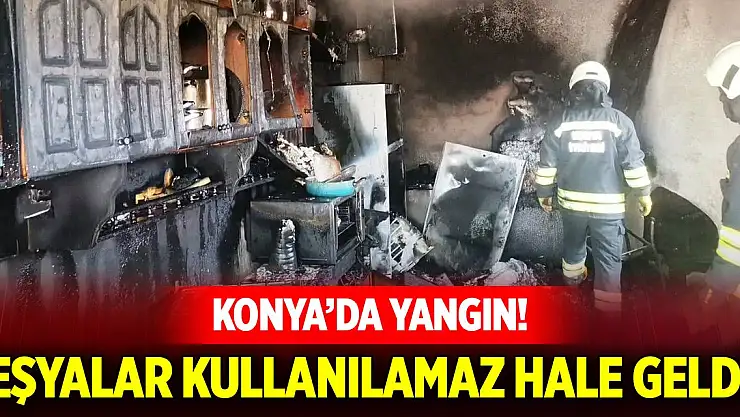 Konya'da yangın! Eşyalar kullanılamaz hale geldi