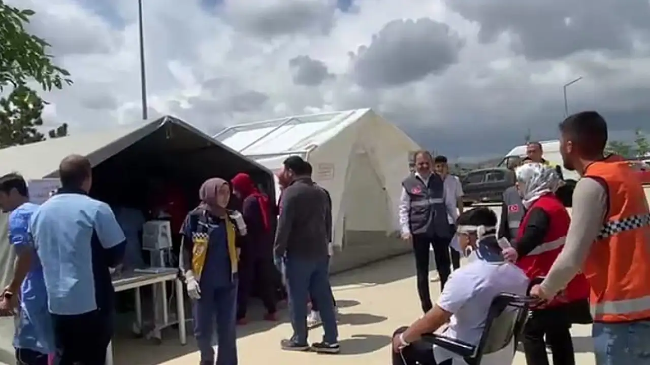 Tahliye edilen hastalar ve depremzedeler için sahra hastanesi kuruldu. Hüyük Belediye ekiplerinin kurduğu çadırlarda ilk müdahaleleri yapılan durumu ağır olan yaralılar başka hastanelere sevk edildi.