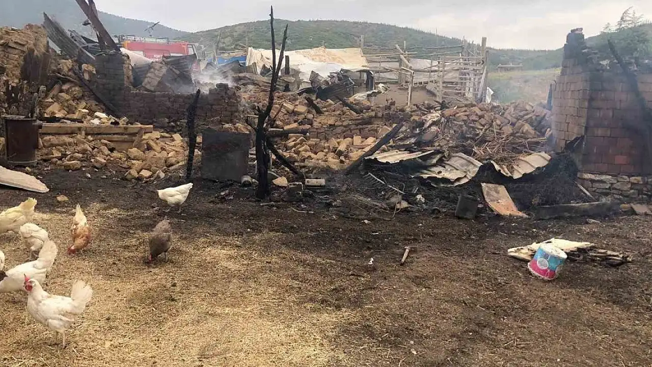 Konya'da yangında bir ev ve ahır küle döndü