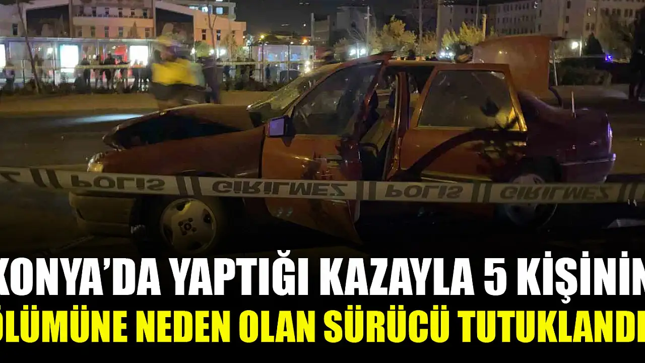 Konya'da yolun karşısına geçmeye çalışan 5 yayanın ölümüne, 5 kişinin ise yaralanmasına neden olan 19 yaşındaki otomobil sürücüsü, emniyetteki işlemlerinin ardından tutuklanarak cezaevine gönderildi.